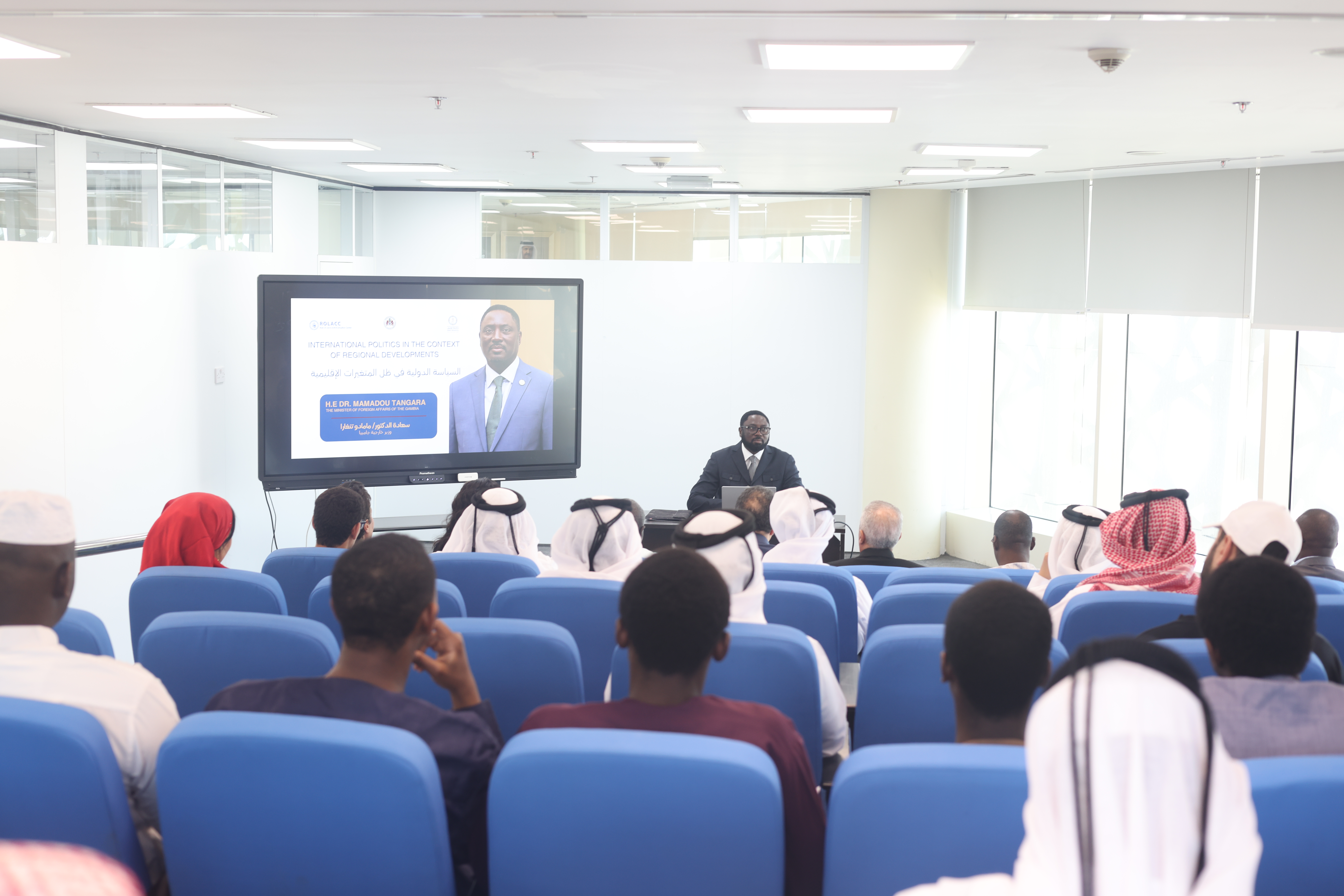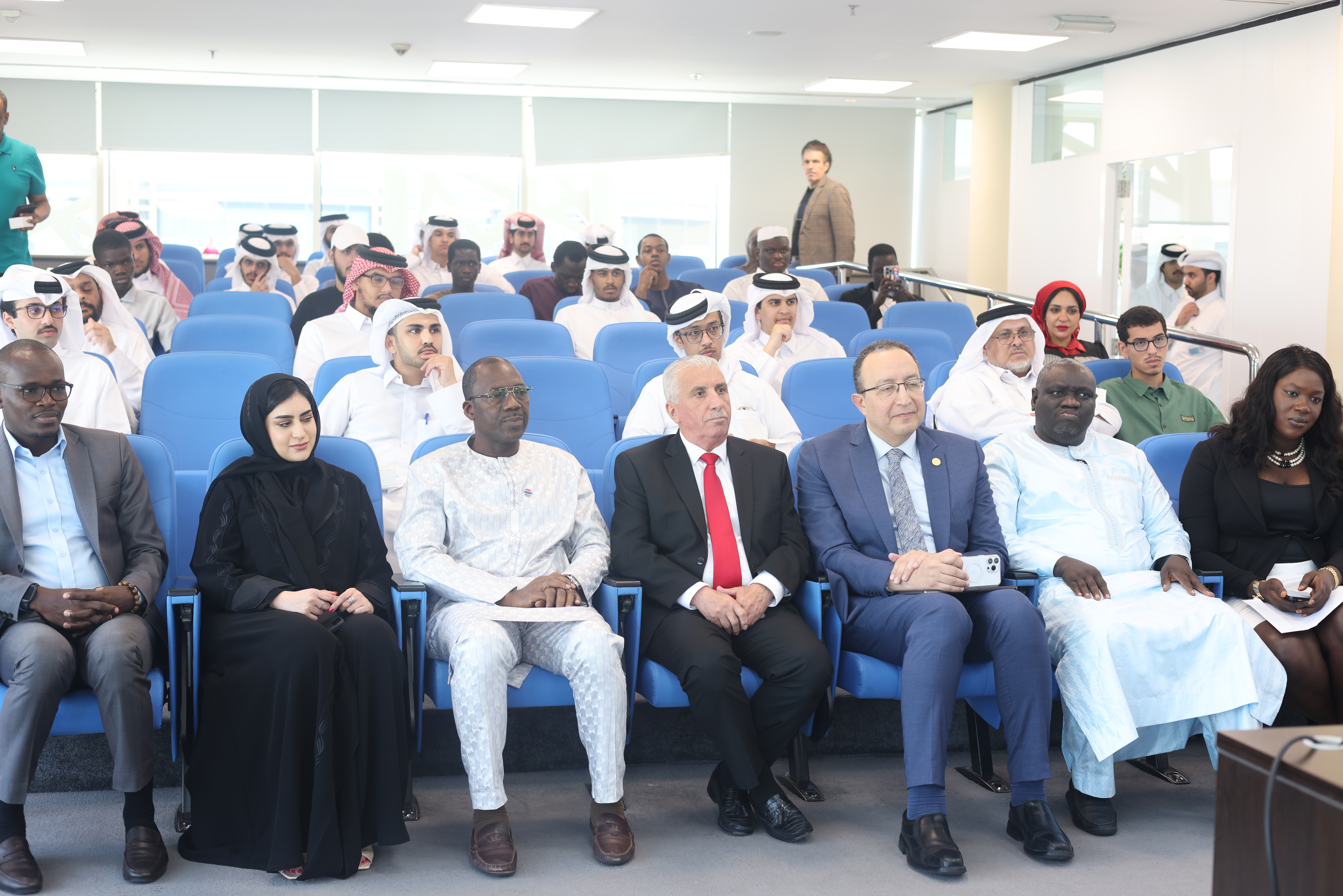 The lecture was held at the Lusail University campus in the city of Lusail and witnessed a large attendance of university students, faculty members, and individuals interested in political and international affairs. During his address, H.E. Dr. Tangara discussed the major political transformations shaping the world and their implications on inter-state relations, particularly in conflict zones. He also emphasized the rising role of multilateral diplomacy and the importance of promoting dialogue and understanding amid successive global crises.