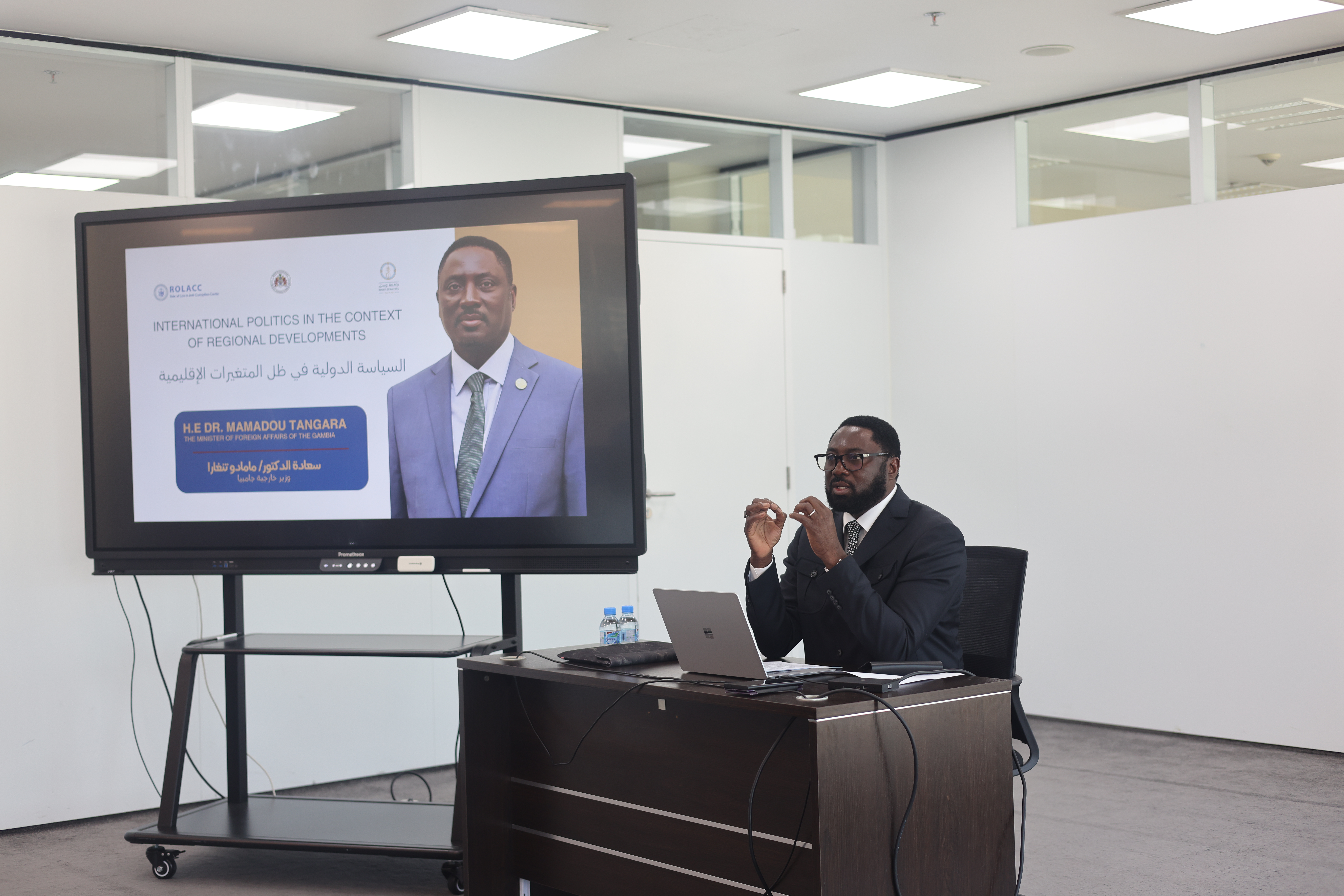 At the conclusion of the event, H.E. Dr. Mamadou Tangara expressed his deep appreciation for the warm welcome he received and his admiration for the academic level and evident interest of Lusail University students in global affairs. He also thanked Lusail University and the Rule of Law and Anti-Corruption Center for the opportunity to exchange ideas with a distinguished group of Qatari youth.